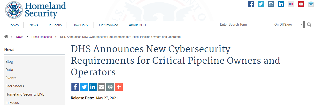 在声明中,美国土安全部部长马约尔卡斯(Alejandro N. Mayorkas)表示,“网络安全环境不断演变,我们必须适应,以应对新的和正在出现的威胁。最近,一次主要的石油管道遭软件勒索表明,管道系统的网络安全对我们的国土安全至关重要”。