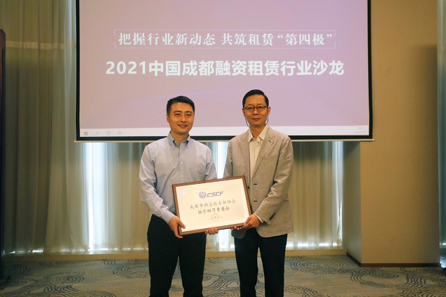 在与会嘉宾的共同见证下,成都市地方金融监督管理局程桦副局长为成都市供应链金融协会融资租赁专委会授牌,专委会的设立为本区域融资租赁行业规范化、制度化发展奠定了坚实的基础。