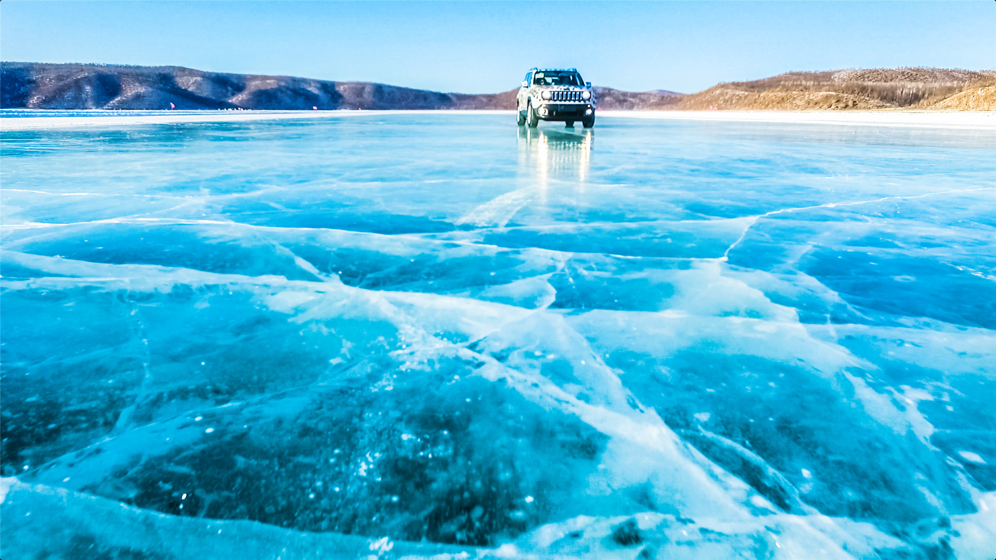 先说冰,Jeep自由侠的极寒测试选择在了黑龙江黑河二门山水库试验场,那里最低气温逼近-40℃,视线范围内只有冰蓝和雪白,冰层厚度超过了1米。此时我不由自主想起了崔健的一首老歌《快让我在雪地上撒点野》 ,当作此时的背景音乐,恰如其分。