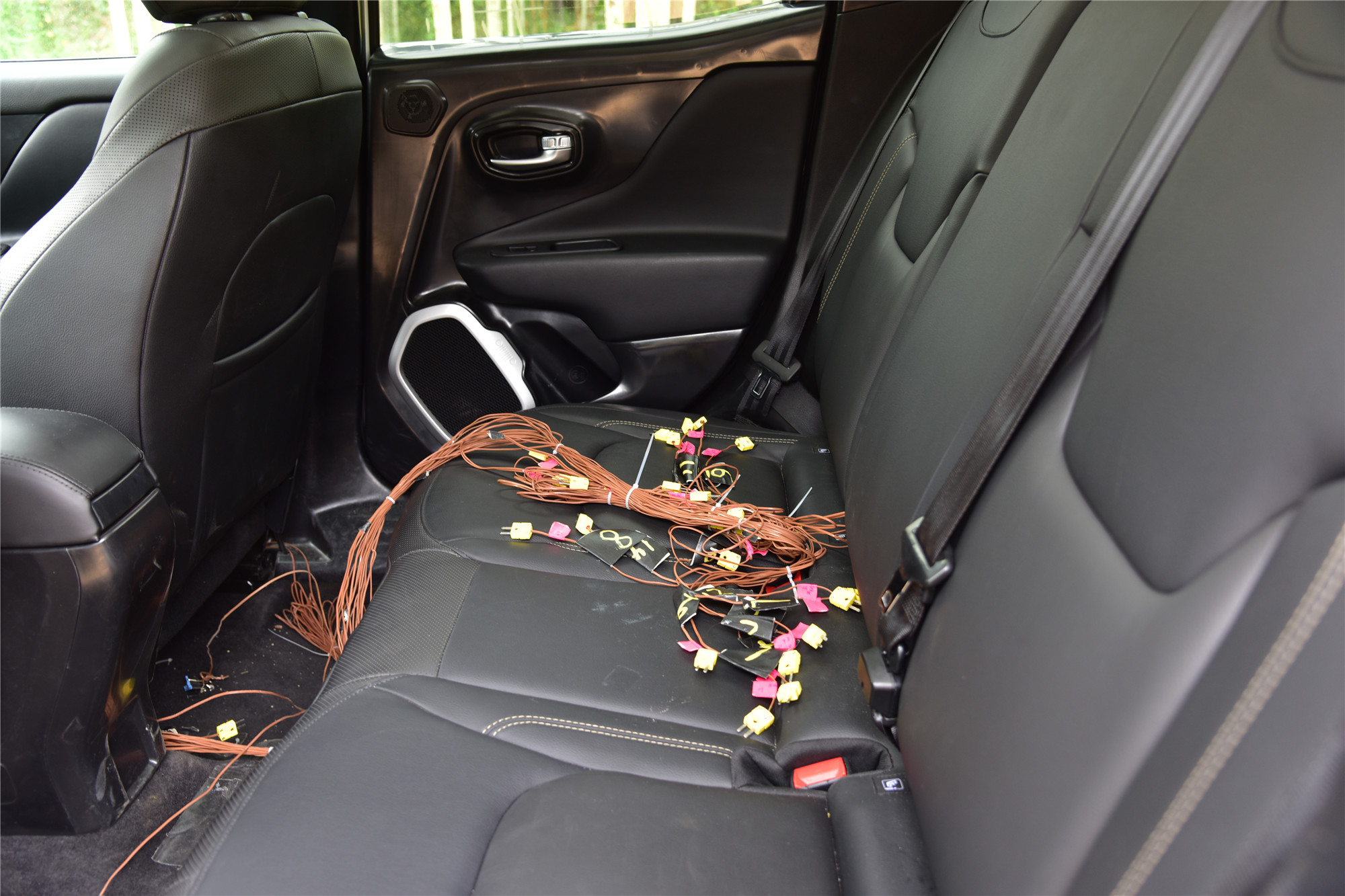内装,如我们之前所说,这台Jeep自由侠是工程测试车,内部布满了传感器与线缆,内饰板只是简单易拆的塑料件,对于实车而言完全不具有参考价值,这部分需要本月18号国产Jeep自由侠正式下线后才有定论。