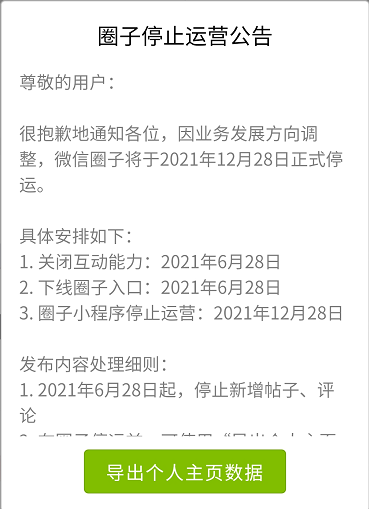 5月28日消息,微信圈子发布公告称,因业务发展方向调整,该功能将于2021年12月28日正式停运。据36氪报道,微信圈子的前身是“好物圈”,于2019年初上线。2019年12月,好物圈更名为微信圈子,产品功能开始偏向内容社区发展。
