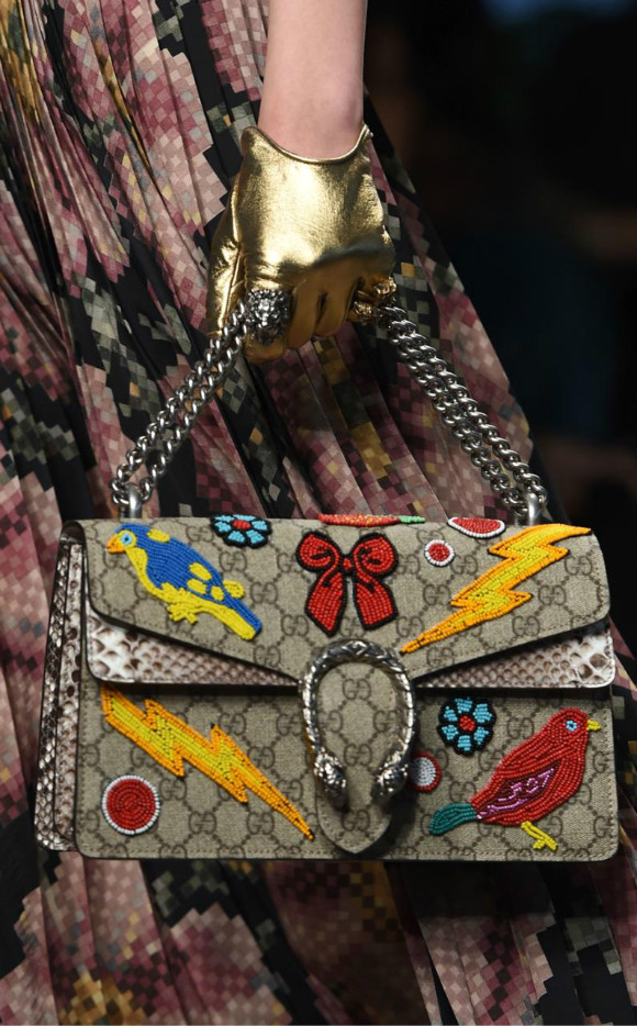 “你必须懂得如何使用它,”Marco Bizzarri说到设计师与品牌Logo之间的微妙关系:“通过重新定义过去来寻找未来。”于是,我们看到佩饰设计师出身的现任创意总监Alessandro Michele在一年多的时间里重塑起Gucci:复古、文艺又时髦。这副截然不同的新面貌刺激着所有感观,而让人回过神的恰好就是充当配角的Logo,以及象征品牌身份的红绿彩条。