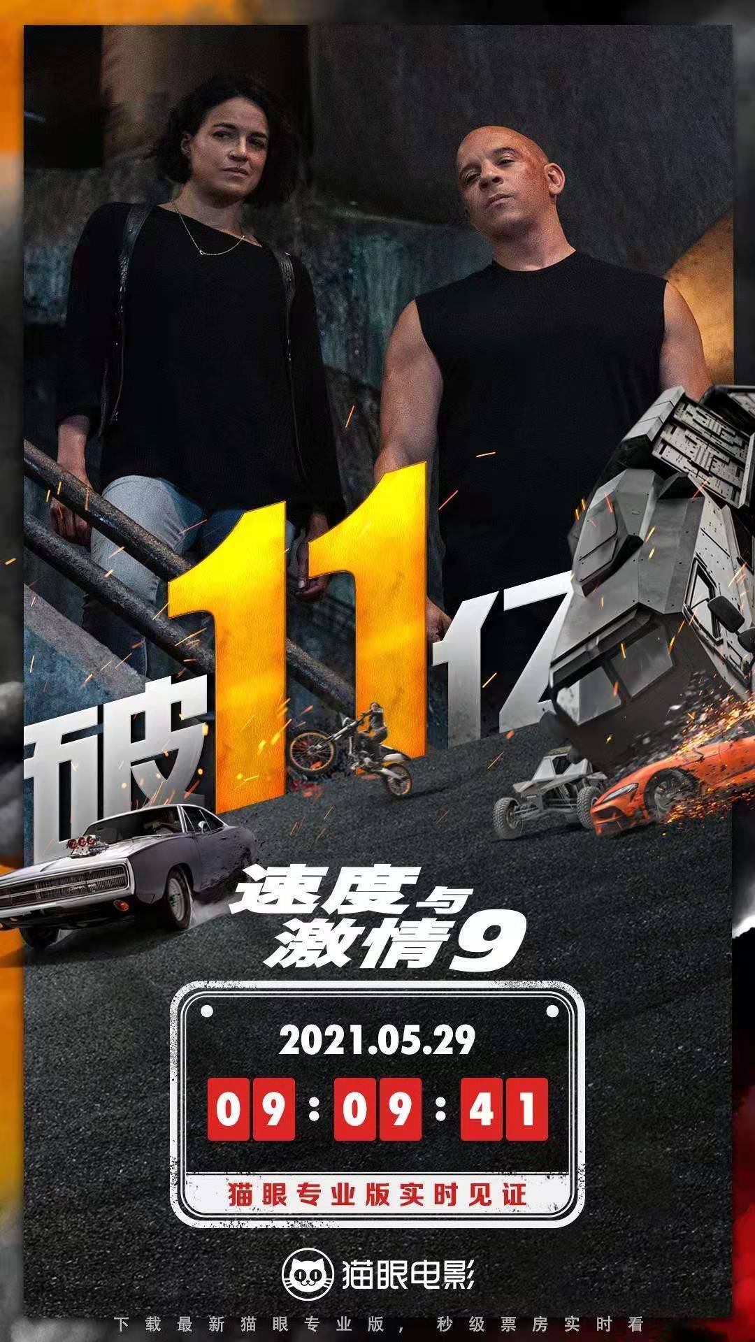@猫眼专业版 微博消息,截至5月29日09:09:41,电影《速度与激情9》内地总票房突破11亿元。