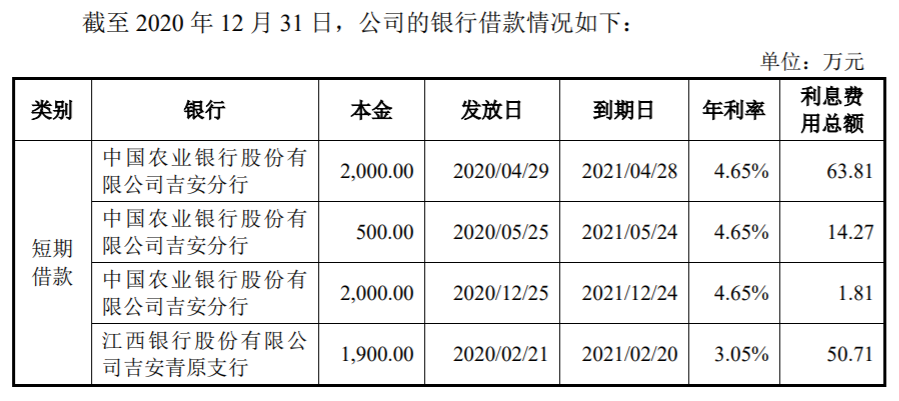 截至2020年12月31日,公司的银行借款情况如下: