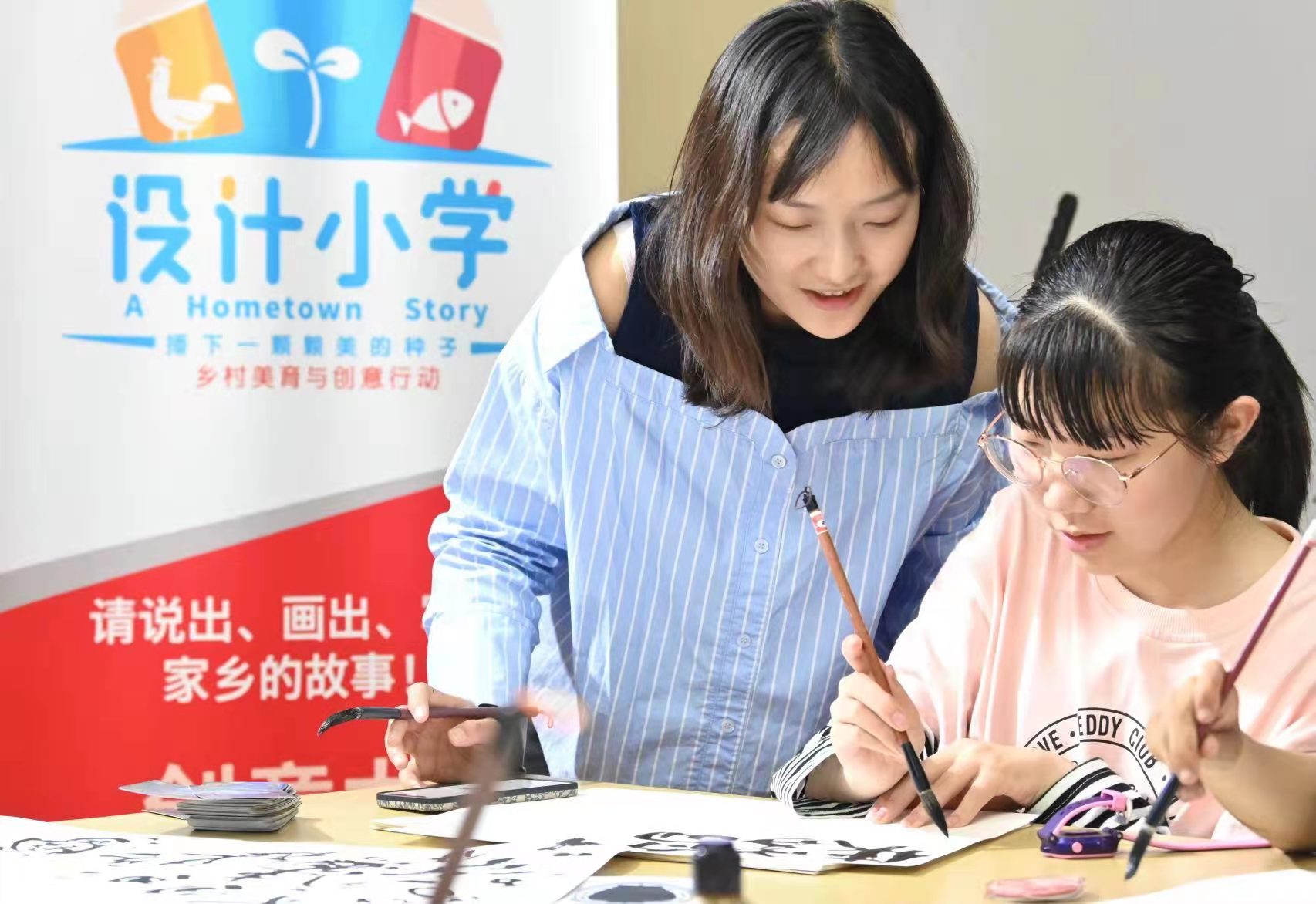 功夫涨坑、武林大会、侠客行、莫言醉……5月29日,在宁波宁海县涨坑村“设计小学”课堂上,一个个跟村庄形象相关的字体被设计出来,“特别有意思,能够设计自己的村庄。”正在读六年级的林可语激动地说。艺术设计赋能乡村,为涨坑村办起“设计小学”,是东华大学服装与艺术设计学院教授陈庆军团队艺术驻村的重头戏。