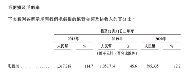 从亏损幅度看:近三年,毛亏损率从114.7%、45.6%,缩窄至2020年的12.2%。