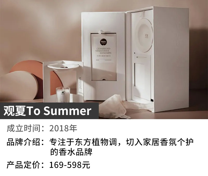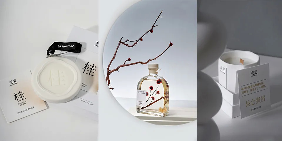 而专注东方植物香的观夏To Summer,在推出香薰、香插、香膏、沐浴液等产品之后,终于将品类扩展到香水。观夏所推产品的香气灵感来自东方的人文、艺术和历史中,比如用颐和金桂、西溪桃花、书院莲池、饮雪探梅等花香来描绘中国的四季之美,用昆仑煮雪来传达围炉而坐、共品雪落的意境。据悉,品牌的香水系列将结合国人熟悉的茶、柑橘等原料表达东方香。