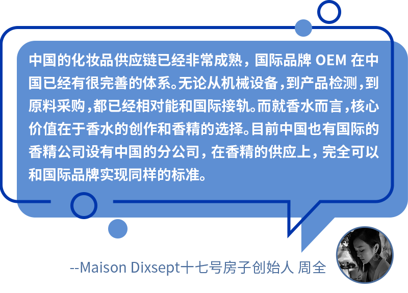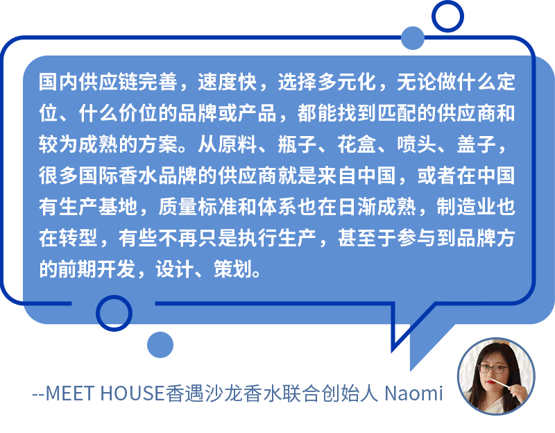 我们能看到当前的香水行业冒出了很多新锐品牌,其中,国内供应链成熟是香水发展的一个前提条件,不少香水品牌创始人都此表示认同: