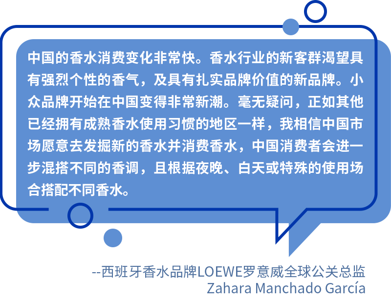 此前,在丝芙兰的2021春夏新品发布会上,罗意威全球公关总监Zahara Manchado García曾提到中国的香水消费变化非常快。香水行业的新客群渴望具有强烈个性的香气,及具有扎实品牌价值的新品牌,小众品牌开始在中国变得非常新潮。