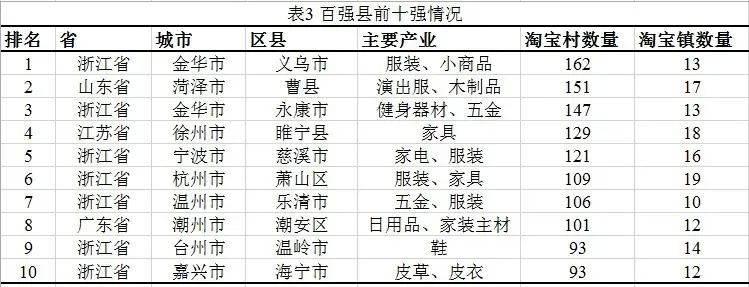 信息显示,淘宝村百强县广泛分布于11个省,山东省位于第四,为北方各省份之首,其中,菏泽市为“淘宝村百强县”最多的地级市,2区7县全部入选。