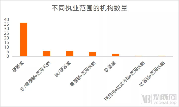 从获批的执业范围来看,55家第三方消毒供应中心可开展关于硬器械的消毒灭菌服务;17家可开展关于软器械的消毒灭菌服务;8家可开展关于医用织物的消毒灭菌服务。其中,37家第三方消毒供应中心专注硬器械的业务,3家专注软器械的业务。软/硬器械、软器械+医用织物、硬器械+医用织物、软/硬器械+医用织物、硬器械+软式内镜+医用织物等综合性执业范围的第三方消毒供应中心数量较少,但服务范围更广,有较强的竞争力。