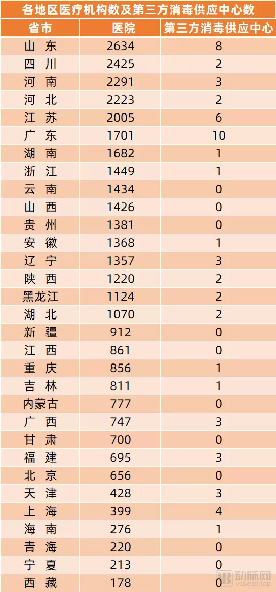 第三方消毒供应中心分布:东多西少