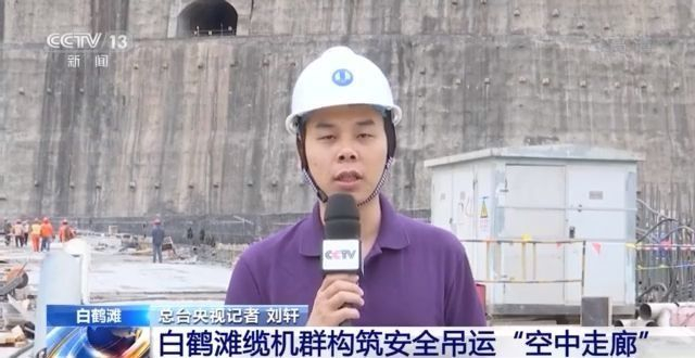 总台央视记者 刘轩:我现在是在白鹤滩水电站的右岸大坝上,在我的后上方就是负责向大坝吊运物资的七台缆机。可以看到这七台缆机颜色不一,分高低两层布置。与把缆机布置在同一层次相比,这么做可以充分利用大坝上方的空间,提高缆机的运行效率。