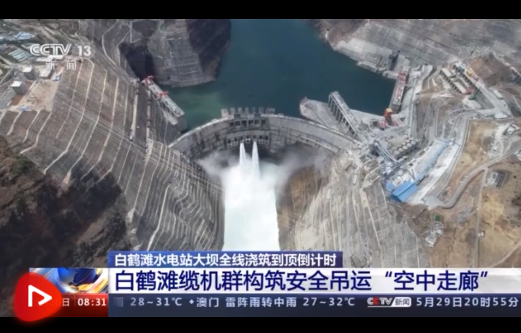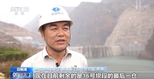 中国水电四局白鹤滩施工局安全总监 焦翔:我们目前已完成30个坝段的浇筑,现在目前剩余的是16号坝段的最后一仓,我们的计划是在31号把这一仓浇筑完成。为了保证这个目标的实现,我们要在30号开仓,届时我们就能把白鹤滩主坝的800多万的混凝土浇筑任务全部完成。