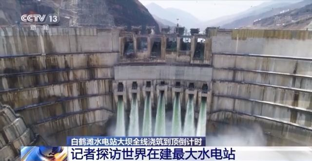 世界在建规模最大水电站——白鹤滩水电站大坝最后一仓混凝土今天(30日)开仓浇筑,大坝全线浇筑到顶进入最后冲刺阶段。