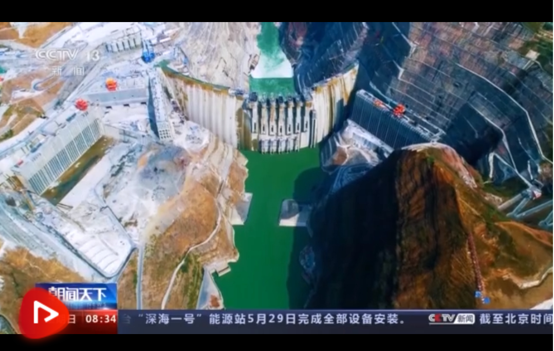 总台央视记者 宋菀:我们现在所在的位置是白鹤滩水电站的大坝上,这个大坝是混凝土双曲拱坝,整个坝高有289米。