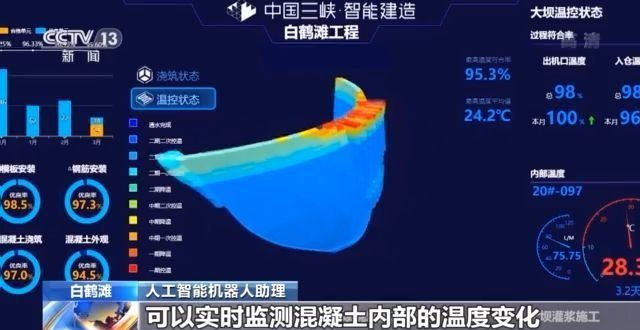 机器人助理:我还了解到白鹤滩大坝跟我一样,是很智能化的。它的建设中有一项创新科技,就是大坝浇筑的混凝土中,埋有几千支温度传感器和许多自动化循环冷却水管,可以实时监测混凝土内部的温度变化,并对温度进行针对性的智能控制,防止出现裂缝。