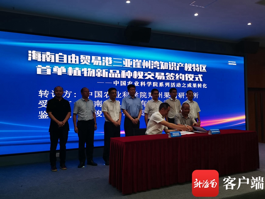 31日,海南自由贸易港三亚崖州湾知识产权特区首单植物新品种权交易签约。中国农业科学院郑州果树研究所与海南奔象梨业有限公司签署《梨新品种“丹霞红”许可开发合同》。此次“丹霞红”梨品种权转让金额为2200万元,期限18年(即植物新品种权保护期内)。这也是中国农业科学院推动建设“南繁硅谷”系列活动之一。