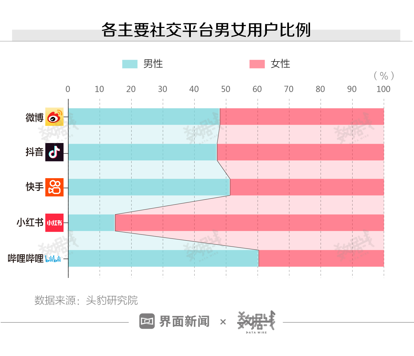 目前国内的主要社交平台中,仅有小红书的用户群体以女性为主,占比超8成。