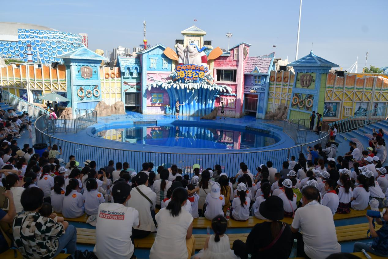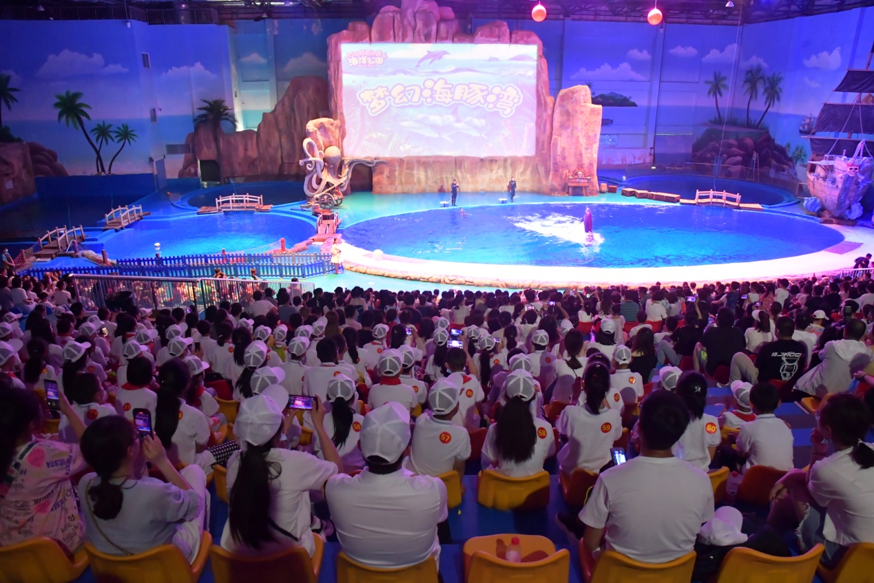 离开西安交通大学,学生们乘车来到了西安华夏文旅海洋公园,极地鲸豚的表演让孩子们感叹于海豚的聪明与灵性及驯养师天衣无缝的配合;海兽秀场里海狮、海象的抓圈、吹口琴、仰卧起坐、与孩子们激情互动;飞越丝路的5D飞行院中,孩子们身临其境于梦回长安的探秘。整个参观过程中孩子们时而欢声笑语、时而鼓掌喝彩、时而与同伴分享自己对奇妙海洋之旅的喜爱。