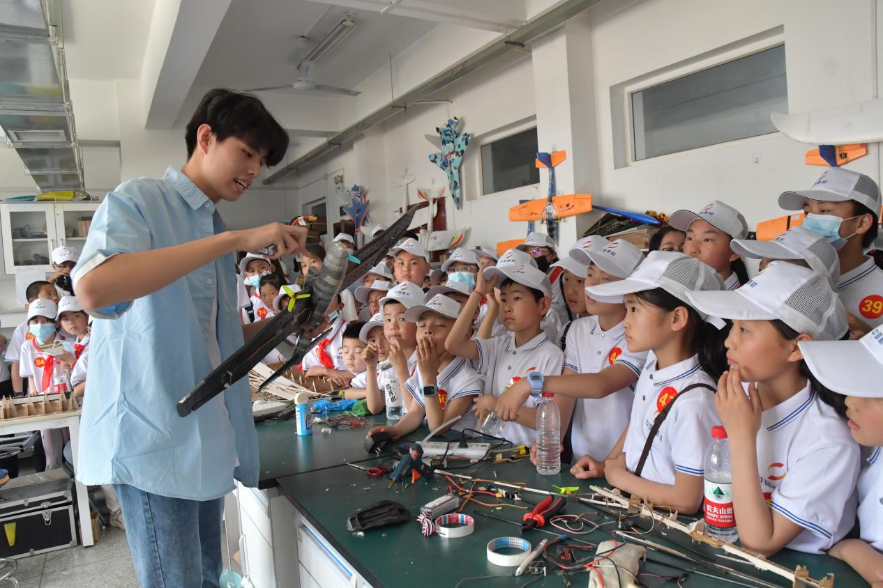 随后,学生们来到航天航空学院,了解基本的航模飞机构造,观看航模操控演示等。
