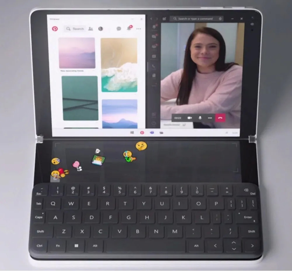 社长曾在微软中国的一次活动上看到 Panos Panay(微软首席产品官)首次展示 Neo,那是一个将两块窄边框 9 英寸屏幕对折起来的设备,重量是轻到惊人的 655g 。它可以在小屏幕时,用第二块屏幕区域充当键盘,而在完全展开之后拥有更大的显示区域。