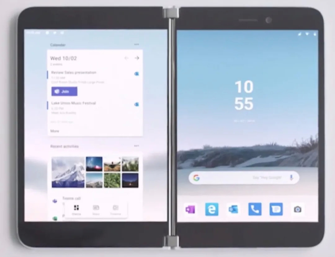 随 Surface Neo ,微软还宣布了一款小手机 Surface Duo,它本来也想用 Windows 10X 系统。在 10X 开发陷入僵局后,Surface 团队仍然希望销售一款手机。2018 年底,微软与外包服务商 Movial 签订合同,针对 Duo 定制了一款 Android 系统,并将几个 Windows 驱动移植到 Android 上。