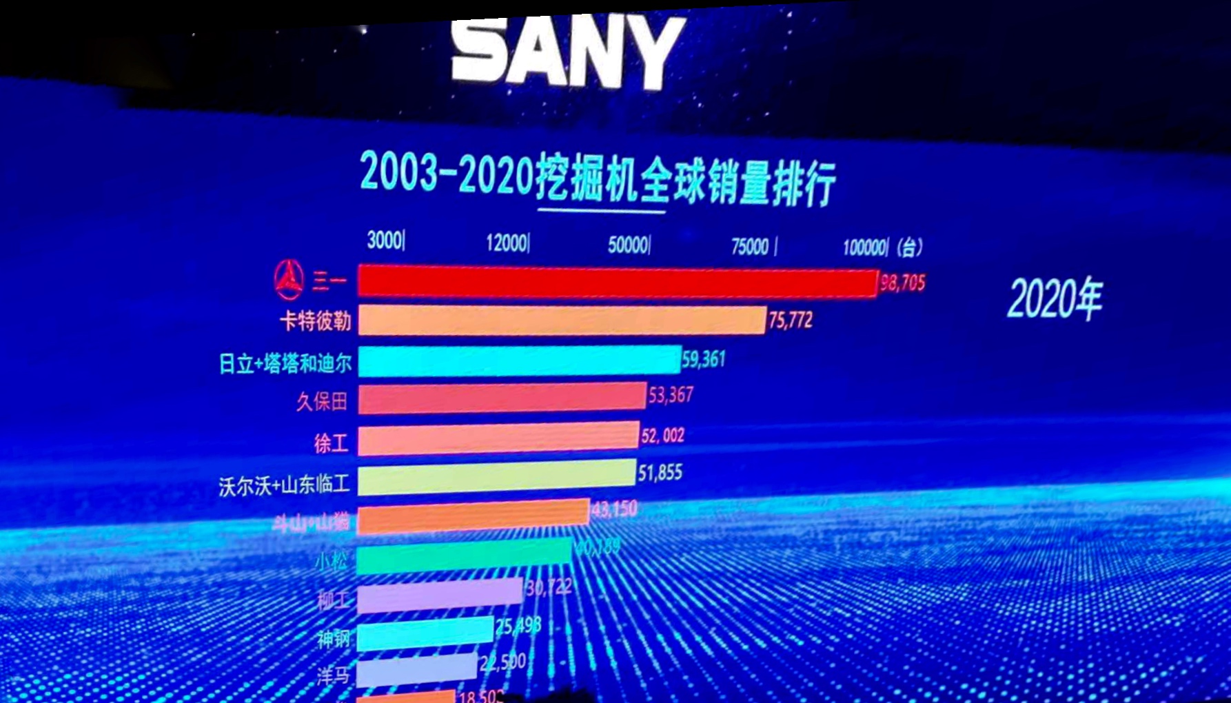 5月31日,三一重工宣布,其挖掘机全球销量登顶全球第一,同时推出新一代SY375IDS智能挖掘机。当晚,该公司在昆山举办庆功晚会。