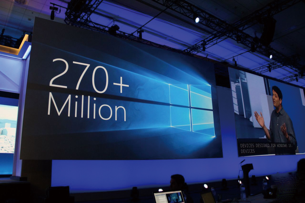 而今,距离正式版本发布以逾半年,微软在Build2016大会上也展示了一下Windows10的肌肉。宣布Windows10操作系统装机量表现惊艳,其装机量已经超过2亿7000万台,其升级增速超过以往任何一个版本。Windows10正朝着三年构建十亿级容量生态系统的宏大目标迈进。