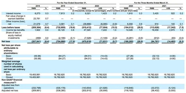 但至今它还未走出亏损,2018年-2020年,该公司净亏损分别为2.1亿元、7亿元、4.7亿元,三年累计亏损13.8亿元。