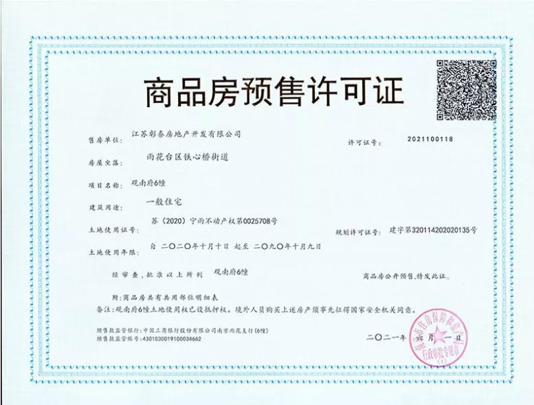 彰泰观南府今日领取6号楼收官楼栋销许,共计48套房源,户型建筑面积96、128㎡均价33935元/㎡,全装修交付,可另加装修包约1800元/㎡。明日(6.2)开启报名,报名时间为6月2日上午9点至6月3日上午9点,报名请关注“彰泰南京”微信公众号。