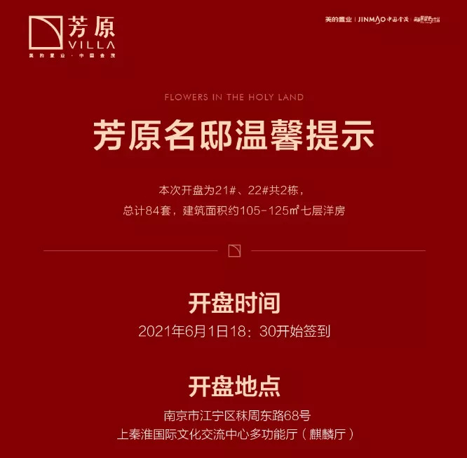 据项目公众号显示,江宁纯新盘芳原项目将于今晚18:30开始签到。