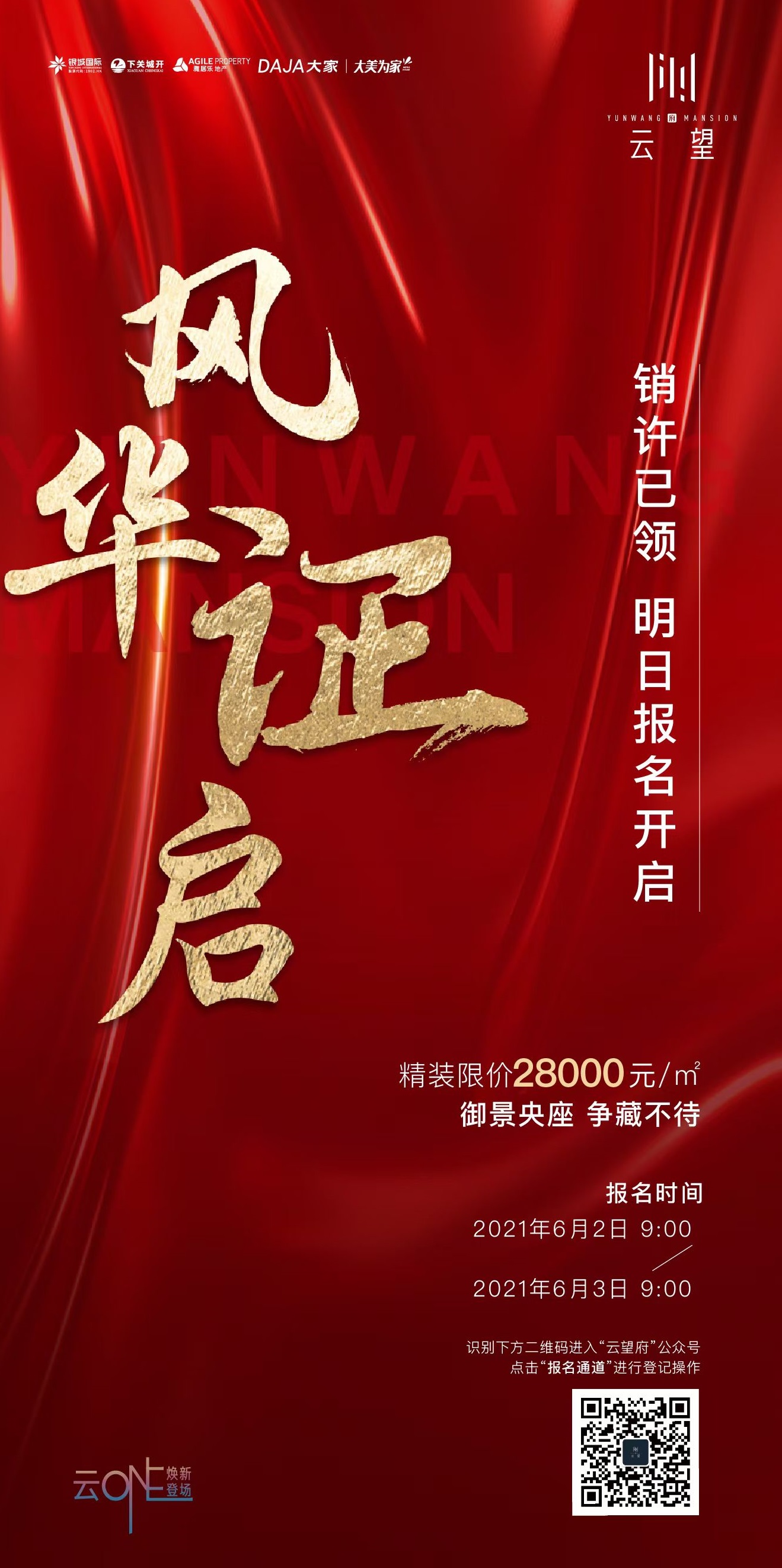 城南热盘云望府项目领取3#、6#两栋楼销许,共计约260套房源,建面约95、110、132㎡户型,均价,精装交付,首付5成,验资127万。明日(6.2)开启报名,报名时间为6月2日上午9点至6月3日上午9点,报名请关注“云望府”微信公众号。