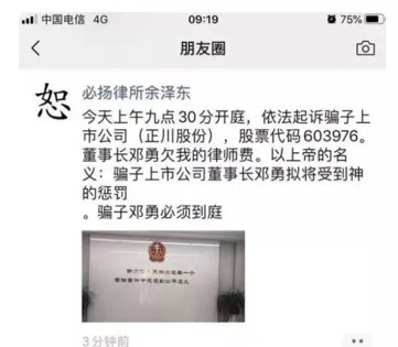 5月31日,重庆必扬律师事务所主任余泽东向证监会实名举报正川股份实控人邓勇操纵、哄抬股价牟取暴利,要求中国证监会相关职能部门稽查总队对邓勇进行立案查处。
