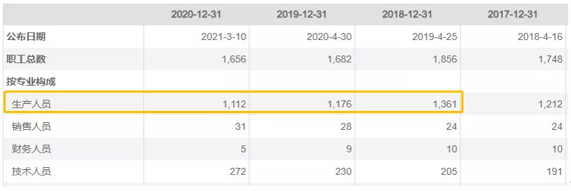 但从上表可见,正川一边对外募资要扩产,一边是生产人员的减少,明显的不合常理。