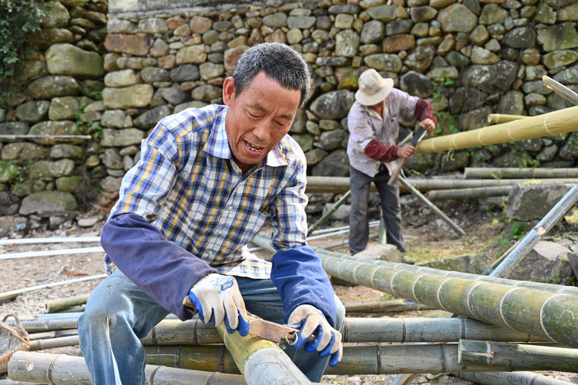 “解决受力问题,可以在帽子的中间增加一要柱子,比如类似电线杆的水泥柱,两边再加固,肯定没问题。”陈庆军分析道。“这样可以是可以,但是帽子直径6米,竹棚也有6米宽,这样帽子放上去不好看,而且体现不出侠客的味道。”林寒水马上作出回应,他和其他村民一起对原先的“侠客帽”进行了重新设计,改变原先的斗笠式,采用了圆锥式,武侠味显得更浓。