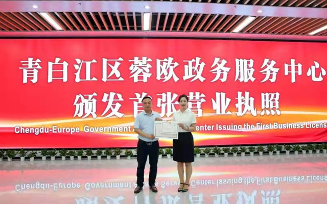 6月1日上午,在位于欧洲产业城智谷大楼的蓉欧政务服务中心,成都万创智臻商贸有限公司企业负责人谢先生,用了不到半个小时的时间,领到了中心颁发的第一张营业执照,标志着蓉欧政务服务中心正式运行。
