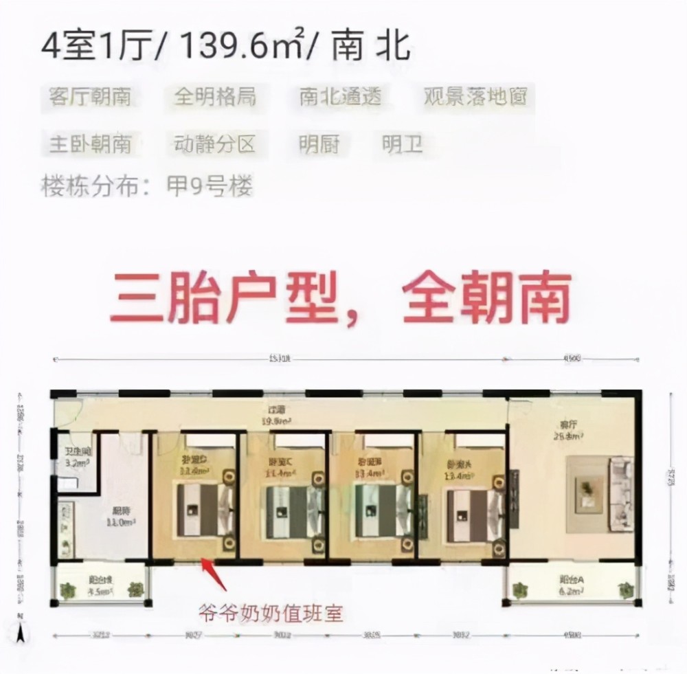 据媒体报道,上海某地产中介挂出“139平方米四室一厅全朝南”的户型,声称其亮点是:灵活多变,孩子小的时候可以容纳父母居住“值班照顾”,孩子长大了则可以一人一间。据该中介称,已经有两三个客户和他聊过这套户型了。
