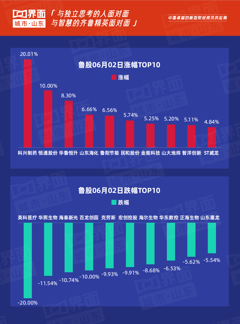 受大盘影响,6月2日,山东省内沪深股票有70只个股上涨,155只下跌,科兴制药领涨。