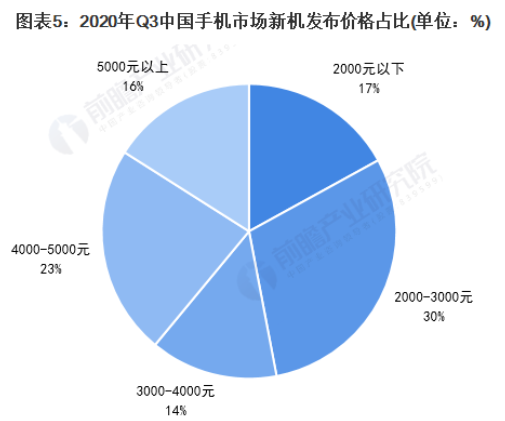 然而,自2017年品牌智能手机的价格就连续暴涨30%。2020年第三季度发布的新机中,2000元到3000元的机型占比30%;4000到5000元的机型占比23%,而这两款加起来就超过了50%。