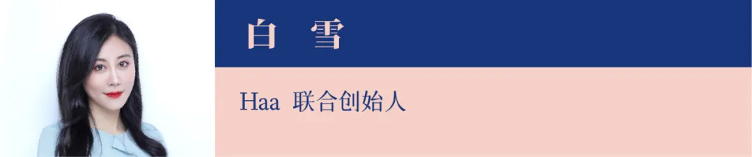 白雪,Haa联合创始人,11年美妆零售经验,实操10亿销售额,合作过国内外1000+美妆个护品牌。18年联合创立Haa,2年创造3亿销售额,覆盖经销商超1000家,目前Haa品牌与国内化妆品行业顶尖高校江南大学联合创新,力争打造国际水平的功效护肤品,为中国消费者提供高质平价的功效护肤解决方案。