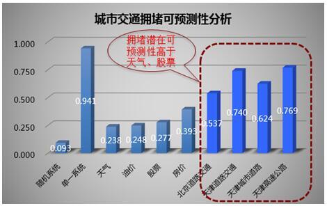 据高德地图和清华大学戴姆勒可持续交通研究中心研究发现,交通拥堵指数相比天气(0.238)、油价(0.248)、股票(0.277)、房价(0.393),可预测性明显较高,而路网路况更简单的城市相比于复杂城市,高速路的拥堵状况相比于城市道路,都更容易被预测。