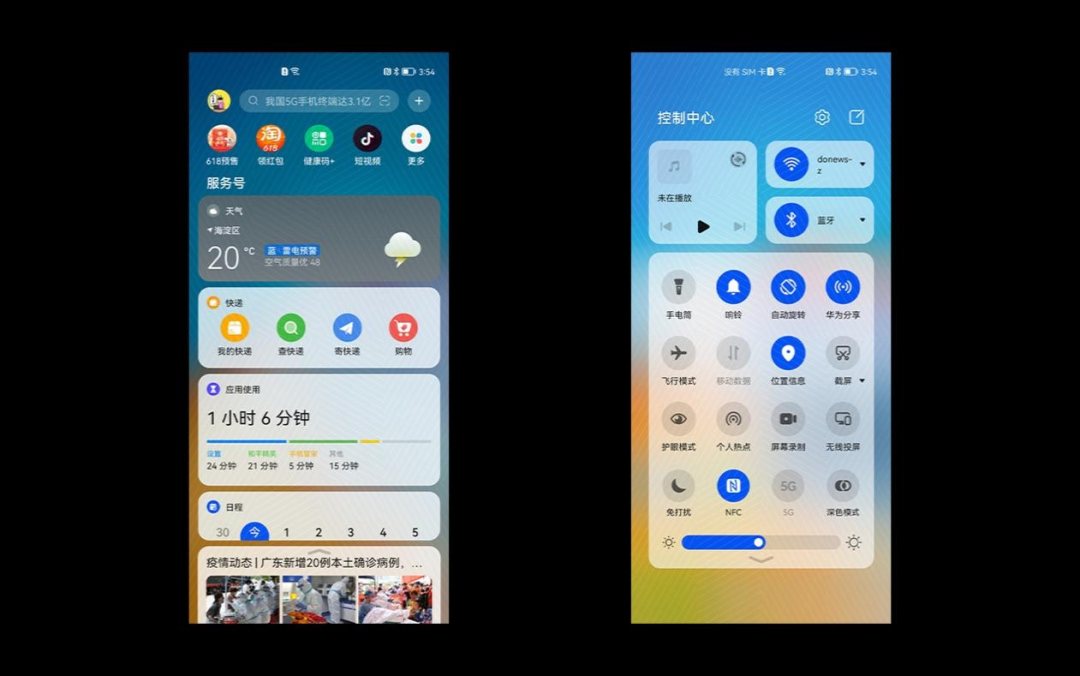 作为一个全新的操作系统,HarmonyOS 2带来了不一样的用户体验设计,除了更好看的用户界面,通知栏控制中心分开,负一屏服务卡片分享也更加便捷和人性化。
