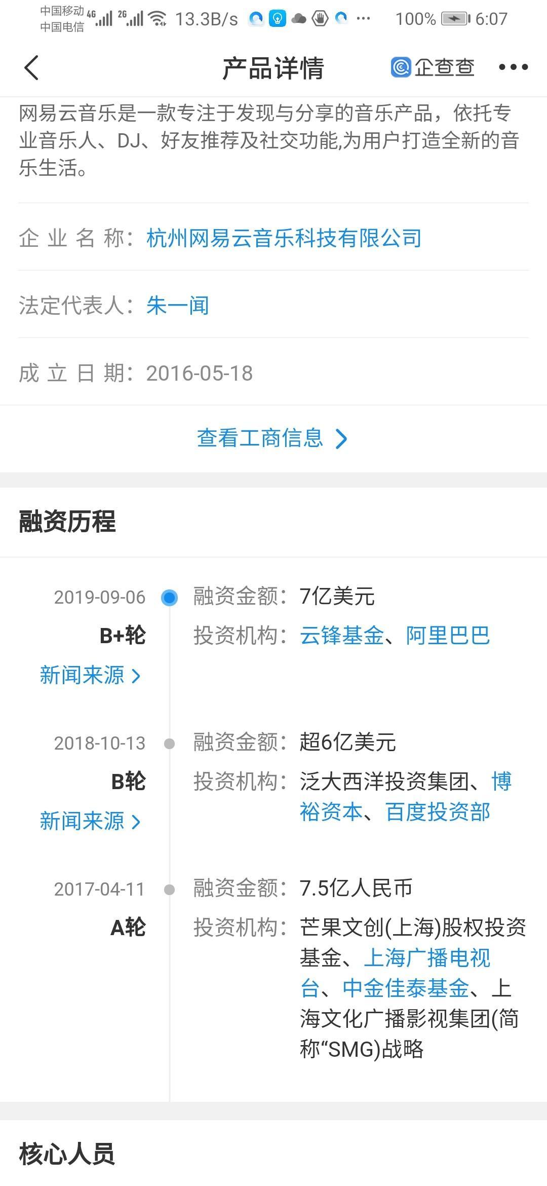 据了解,网易云音乐于2013年上线,获得多轮融资,投资方包括百度、阿里巴巴、云锋基金、博裕资本、芒果文创等融资,累计融资规模超过14亿美元。