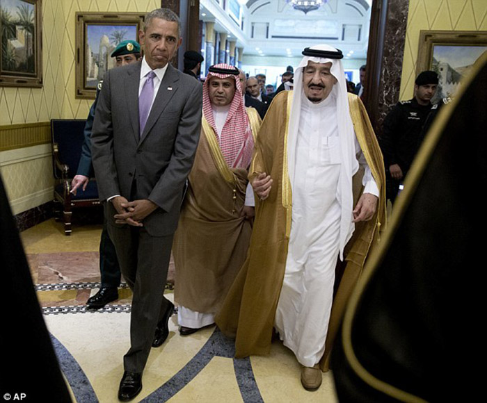 最终,奥巴马总统还是在海湾六国峰会开幕前,在利雅得厄加宫见到了沙特国王萨勒曼。