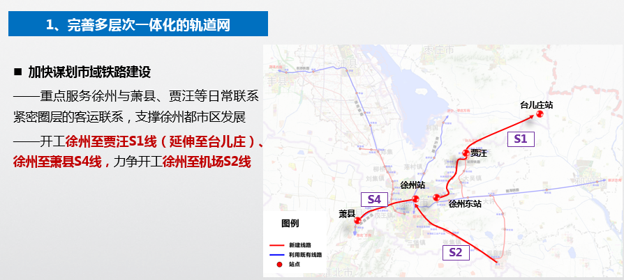 具体内容中,则将开工建设徐州东站至贾汪的S1线(延伸至台儿庄)列入规划。