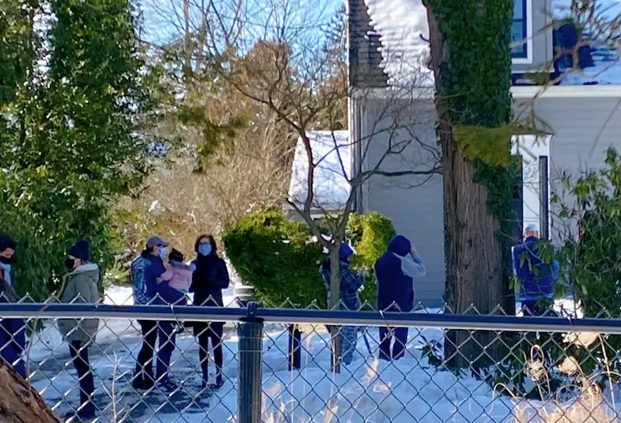 2021年2月初,美国新泽西一处学区房门口的排队人群,拍摄:Amy Wang
