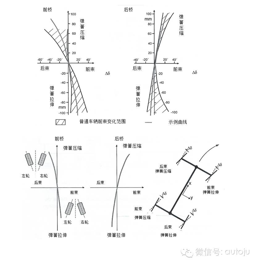 ▎车轮跳动时,恰当的车轮前束变化,保证车辆实现不足转向特性