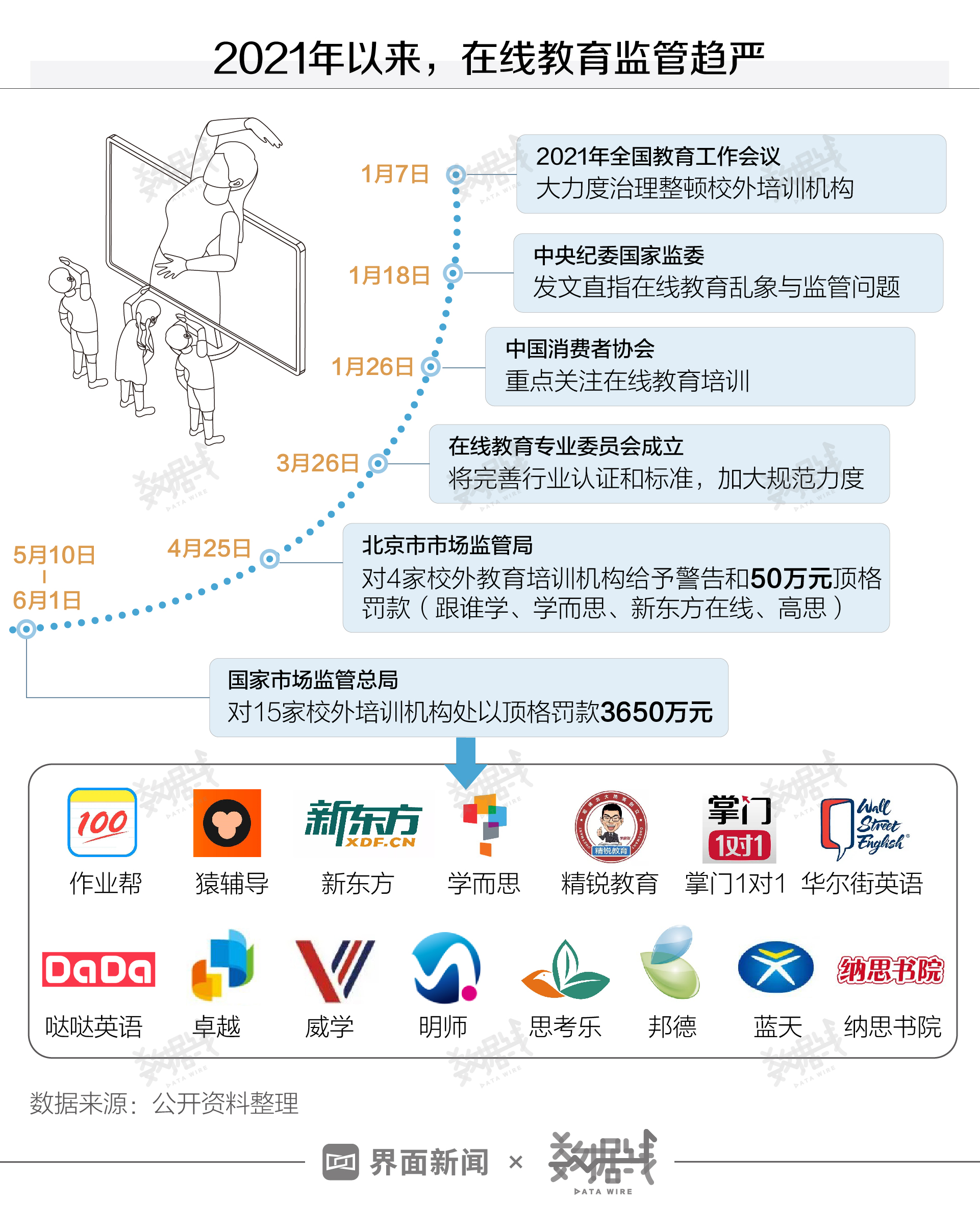 近日,国家市场监管总局对新东方、学而思等13家校外培训机构予以顶格罚款。加上此前被罚的作业帮和猿辅导,目前为止已有15家校外机构被处以顶格罚款3650万元。2021年以来,在线教育监管力度不断加大,如今“三胎”政策出台,配套措施也将跟上,家庭教育成本能降低吗?