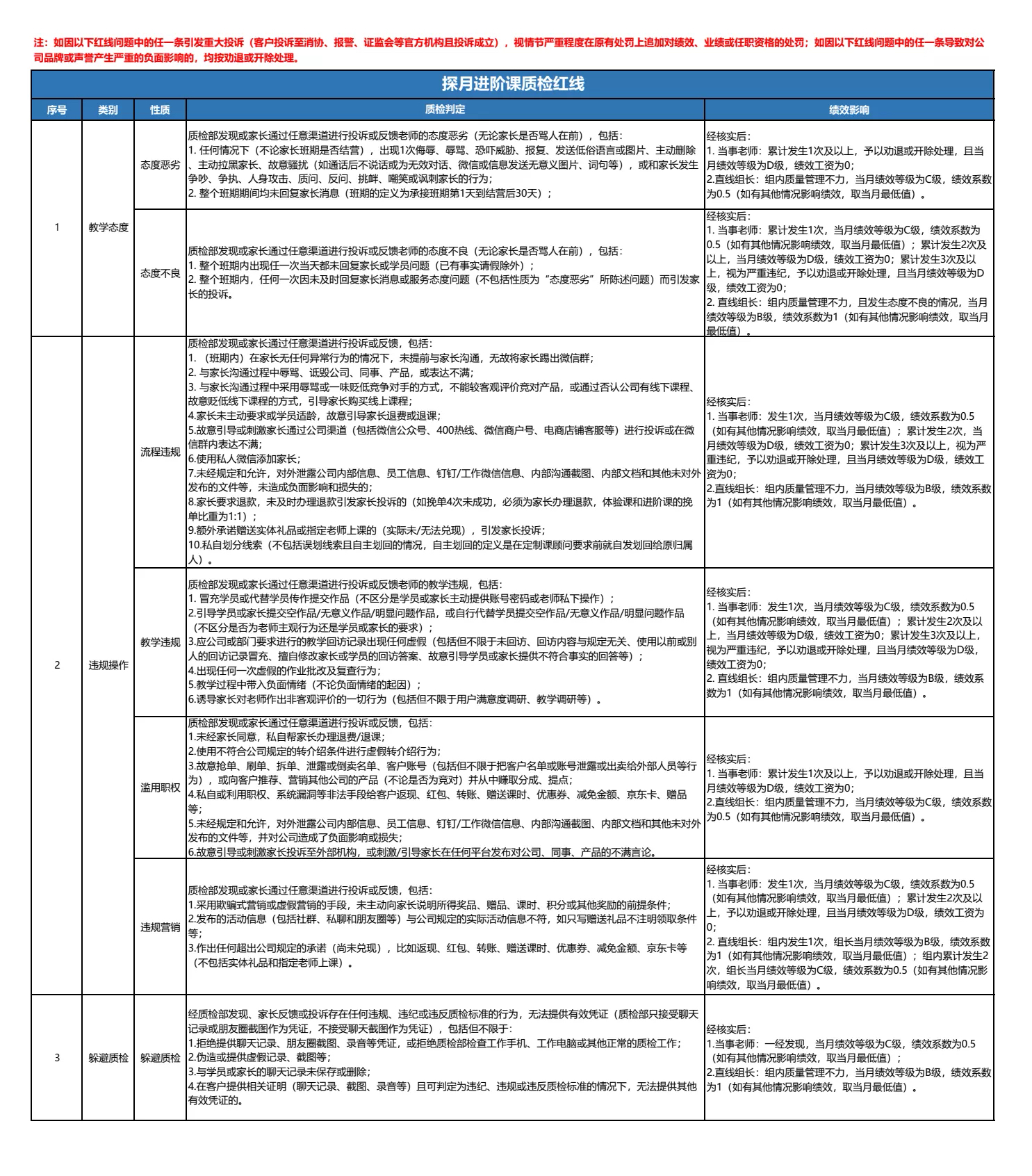 包括小A在内的员工在辞退时被告知,他们给学员的空白或者未完成作业给了通过,虽然使用不通过的话术批改的,但也是违反了“红线协议”而被劝退。